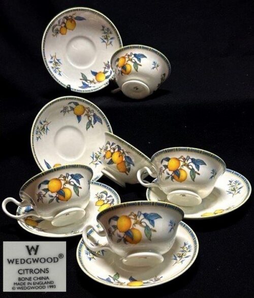 ウエッジウッド【柑橘「シトロン」がモチーフ【レモンに似た「シトロン」ティーカップ&ソーサー】5客。