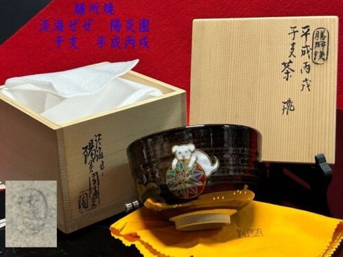 遠州七窯 素朴で繊細【膳所焼(ぜぜやき)陽炎園 干支【平成 丙戌 いぬ】淡海ぜぜ】茶碗 共箱 茶道具お買取りさせて頂きました。