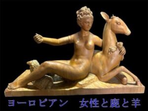 木彫り彫刻ヨーロピアン 女性と鹿と羊 裸体女性を最高額ドットコム五日市店にてお買取りさせて頂きました。 骨董品、ヨーロッパ家具、工芸品、美術品から日用品までお買取り強化中です。 なんでも一度ご相談くださいませ。